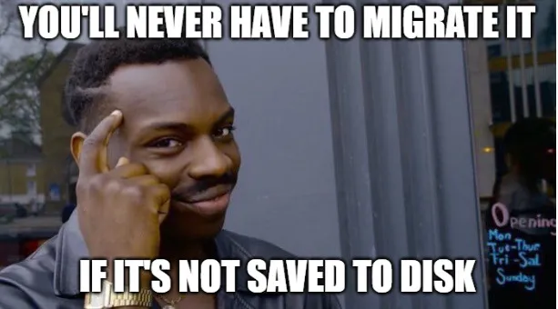 I won’t go into too much detail on this one either, as I wrote a whole article on keeping your data simple at rest. That said, I’ll give you another tl;dr. If you can get away from storing calculated data in your database, you’ll never have to move it. In other words, the less you save, the easier your life is. Let me provide an example.