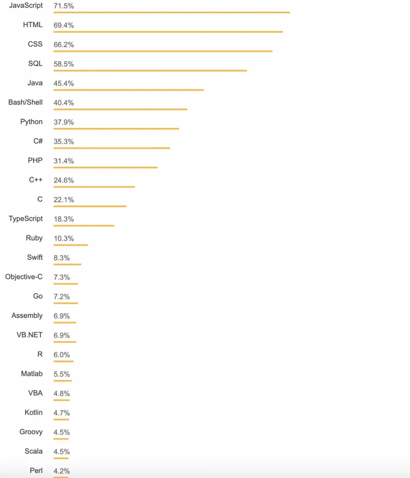 According to the StackOverflow 2019 surveys, Go is ahead in the polls when it comes to programming and markup languages.